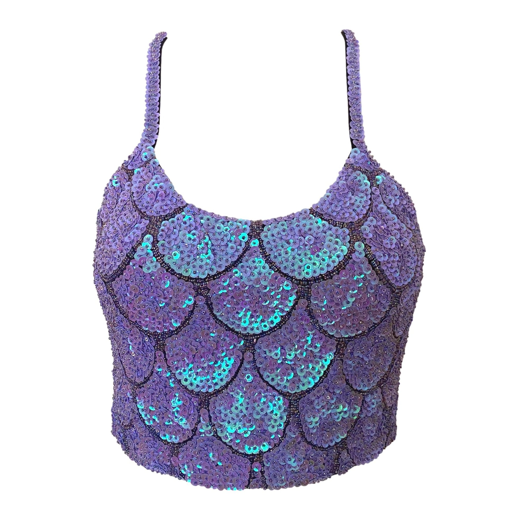 - PLEASE NOTE: that due to availability of sequins, these Crops have a slightly different shade of sequin than the Atlantis Dream Shorties. They throw more of a blue shine in the light, as opposed to the shorties green shine.